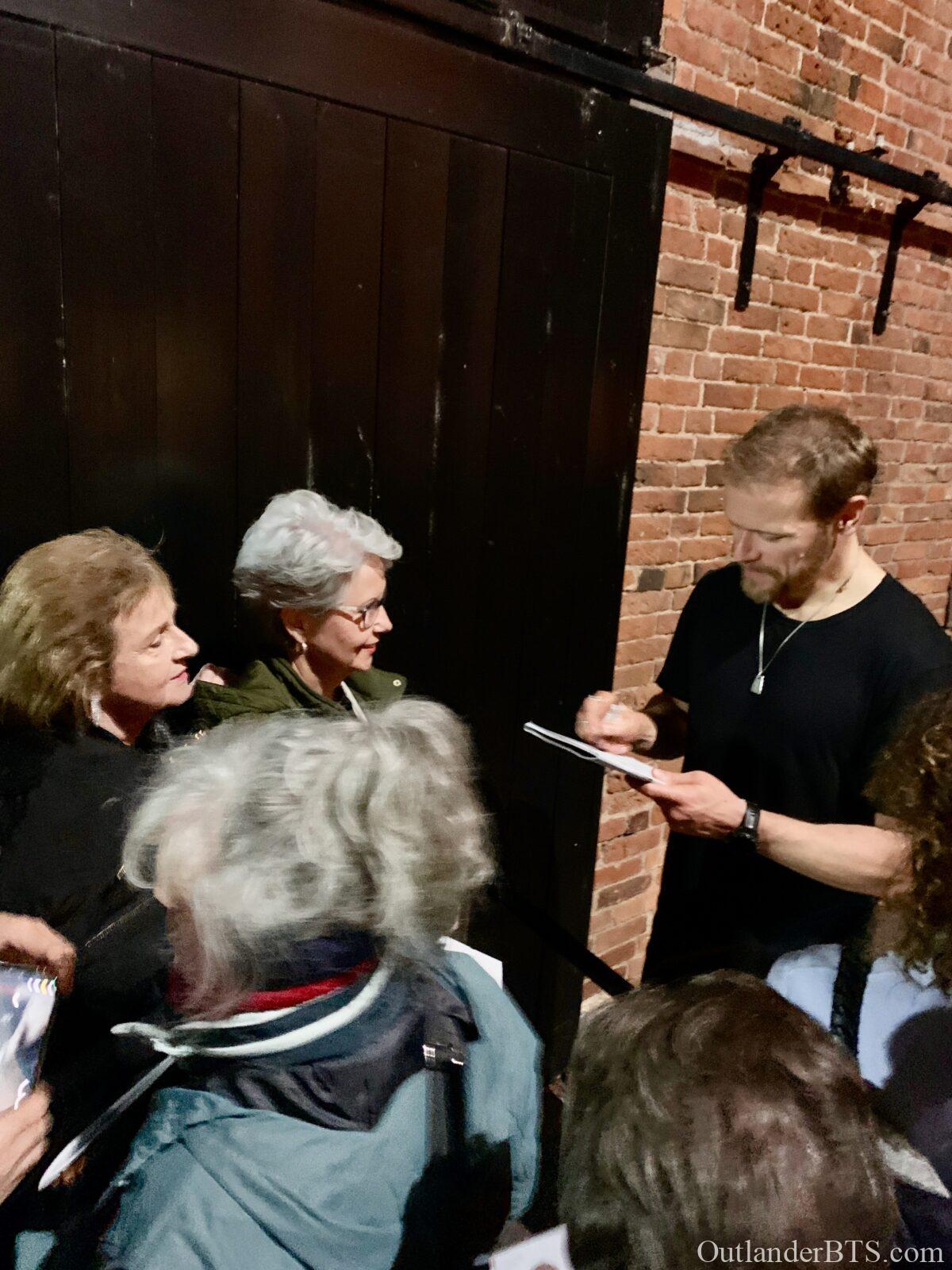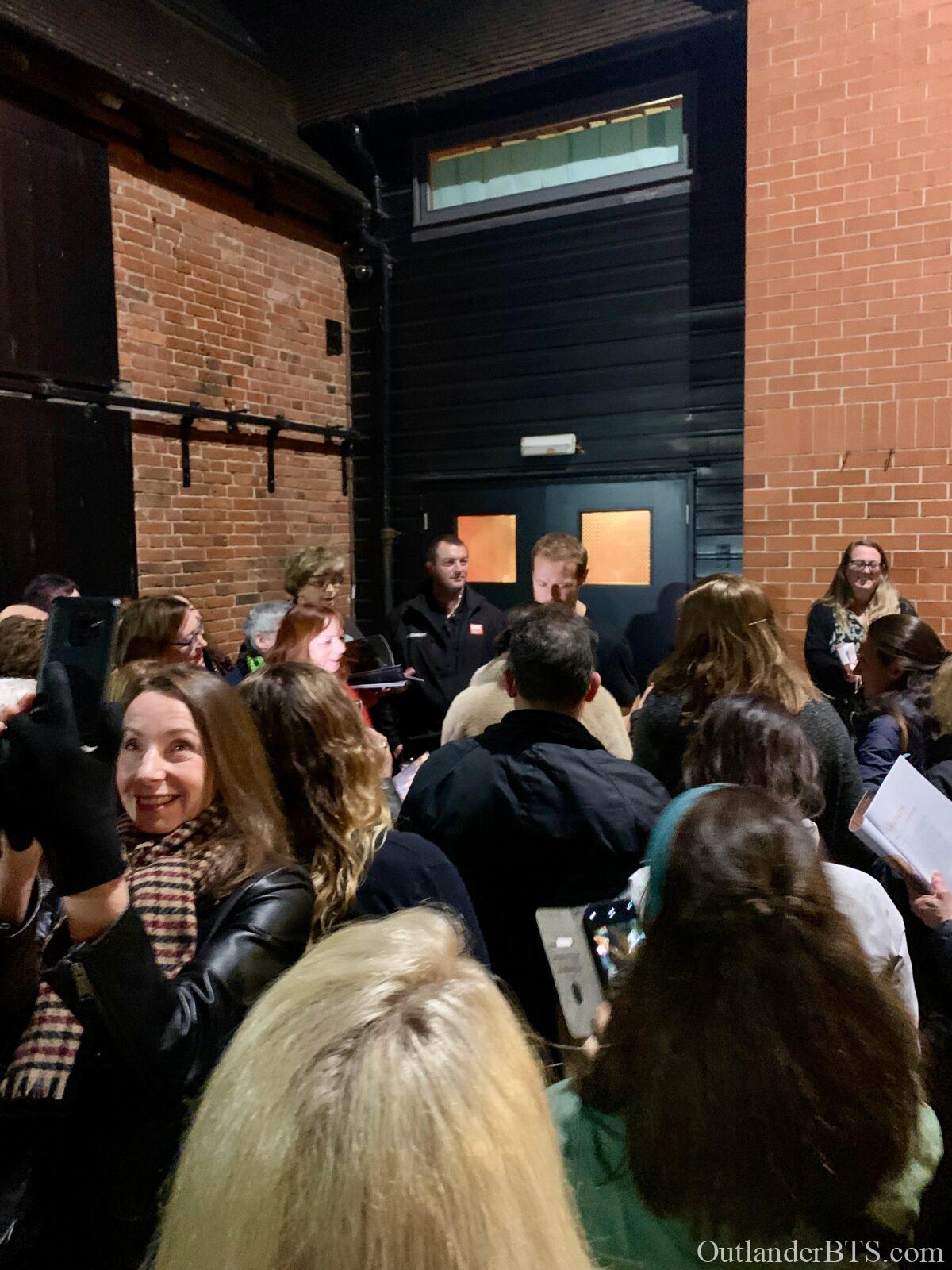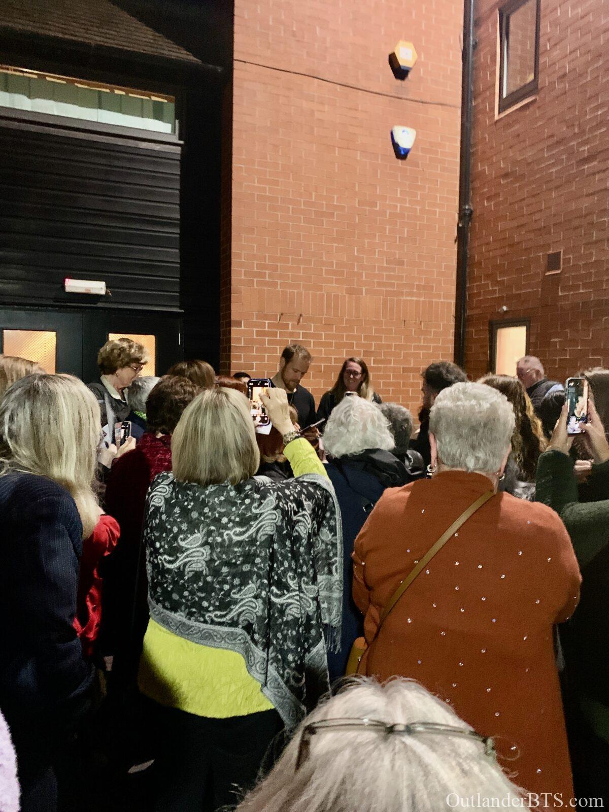 I was there at The Other Place for Sam’s performance on October 28th, and as you suggested, he had definitely reached his stride and seemed totally immersed in his role. He did make a lot of eye contact with the audience as you noted. He was a very powerful presence when on stage. I thought he did splendidly. Our audience did not seem to be primarily Outlander fans, although I have to admit that just looking at someone and sizing them up by their age and attire is not very empirical, but I marveled at how many of the towns people seemed to have turned out for Macbeth. Sam did come out of the stage door (with a “security” guard who looked 20 years old, a foot shorter, and not like he could be very effective in case of an incident) after the show and greeted the crowd of about 30 people. He was very gracious and talked to everyone as he signed their programs. He looked like he had just had a workout (staring in Macbeth IS a workout!) but was his charming self. I told him I had come from California to see the play and he said he certainly hoped I had enjoyed the show after taking such a long trip…….