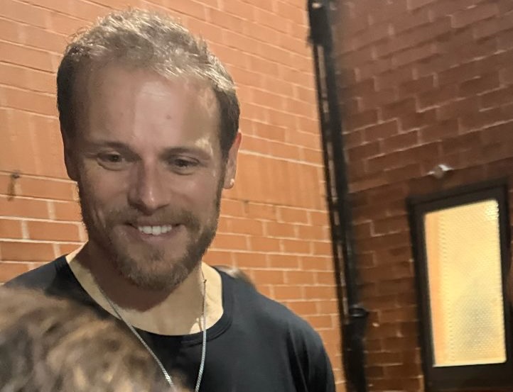 Cover photo: A happy Sam Heughan at the stage door, The Other Place, after Macbeth, Oct 15, 2025; photo credit: Eunice Painter